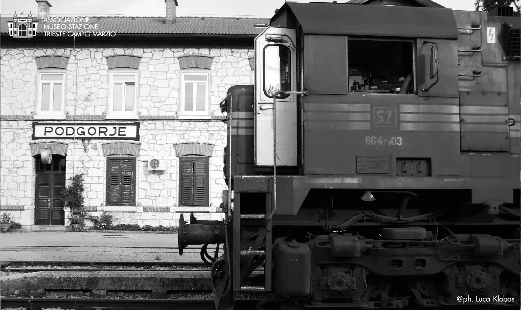 Locomotiva diesel elettrica SŽ 664 103 (soprannominata “Reagan” o “Presidente) in sosta a Podgorje nell’agosto del 2014. La locomotiva è in testa ad un treno di pietrisco proveniente dalla vicina cava di Črni Kal.