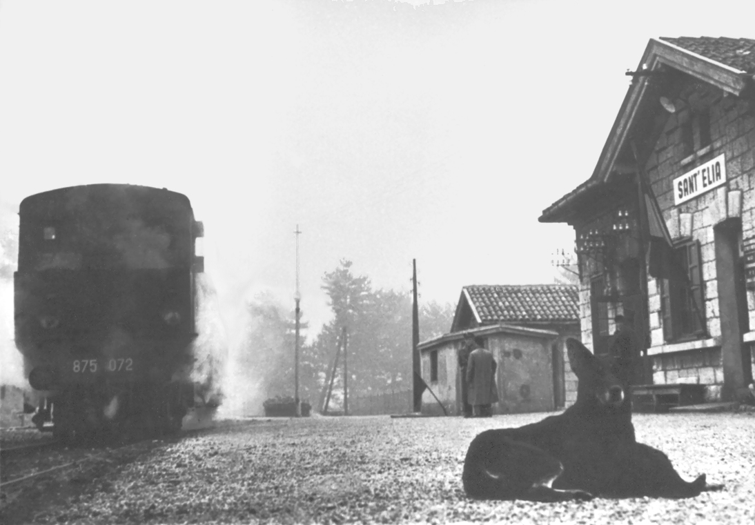 Verso gli ultimi tempi di esercizio della linea in un malinconico paesaggio la 875 072 in sosta a Sant’ Elia prima di riprendere il viaggio verso Trieste Campo Marzio (foto autore sconosciuto).